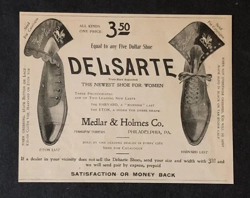 1898 Delsarte Womans Shoe Advertisement Side Button Laced Antique Print AD