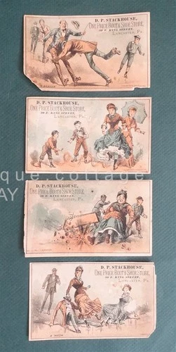 LOT antique STACKHOUSE lancaster pa BOOT SHOE STORE 4pc AD TRADE CARDS