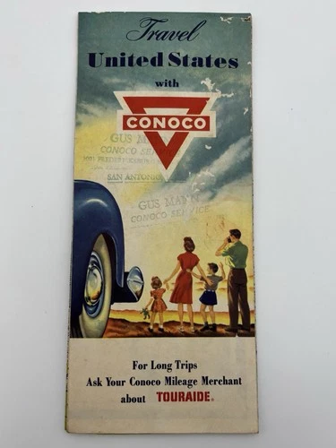 1950s Conoco Travel United States Road Map Touraide TCP Gus Mann San Antonio TX