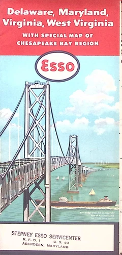 1956 ESSO GAS DELAWARE MARYLAND TRAVEL MAP STEPNEY SERVICENTER ABERDEEN Z6734