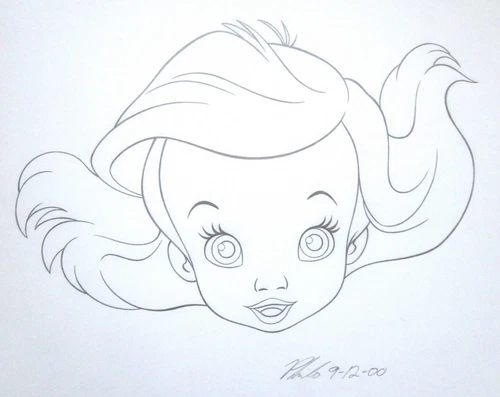 SIGNED LITTLE MERMAID ARIEL BABY WALT DISNEY ORIGINAL MERCHANDISE cel DRAWING