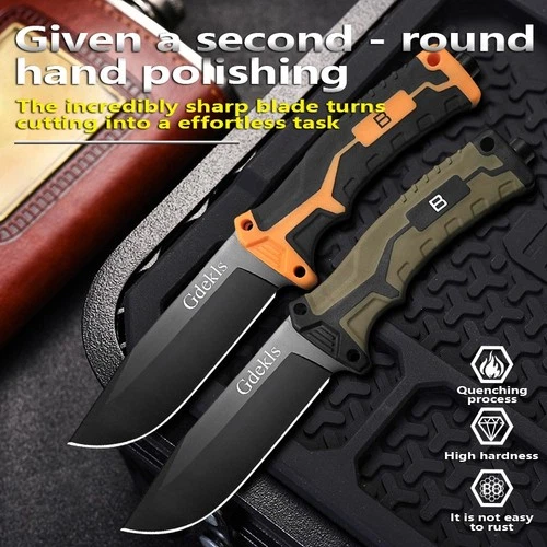 Fixed Blade Stainless Steel Camping Knife Non-Slip Handle Hard Sheath 2 Color