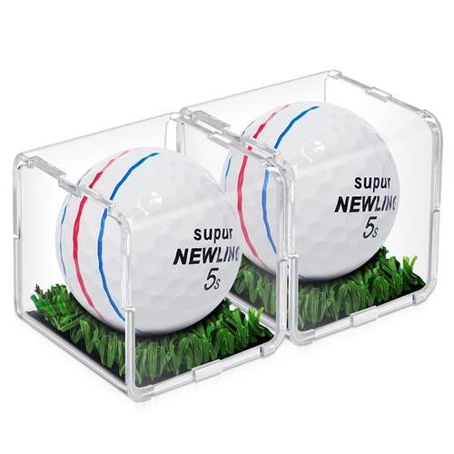 Tioncy 2 Pcs UV Protected Golf Ball Holder Display Case with Turf 2x2 Clear
