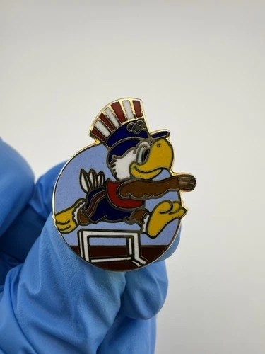 VTG 1984 Olympics LA Mascot Sam The Eagle Hurdle Event Enamel Pin