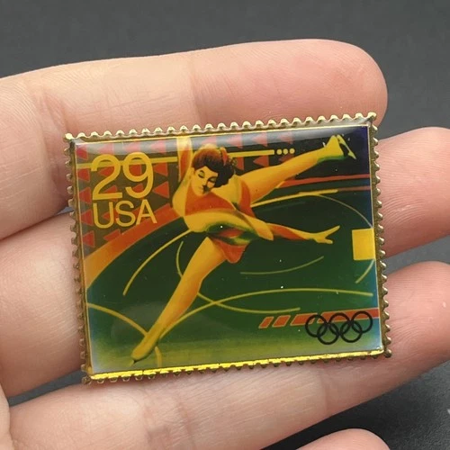 1992 Albertville Winter Olympics USPS Sponsor Figure Skating Stamp Lapel Hat Pin