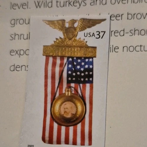 Patriotic American Flag Beaded Pinback Handmade with US Postage Stamp USA37 2003