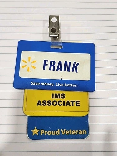 U.S. Veteran Walmart employee name tag badge Frank