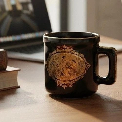 SH Greece Handmade 24K Gold Black Ceramic Mug Parthenon Greek Key Mythology