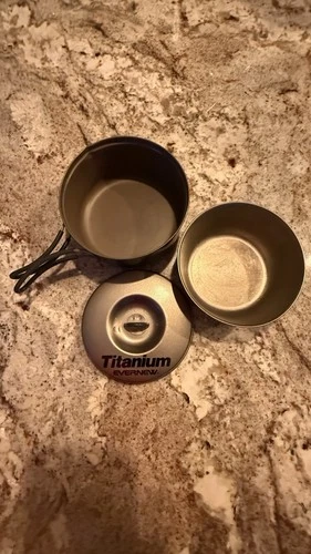 Evernew Titanium Lightweight Camping Pot 900ml W/ Snow Peak Titanium Bowl Japan