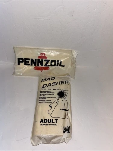 Lot Of 2 Pennzoil Yellow Mad Dasher Adult Size Hooded Plastic Rain Poncho Sealed
