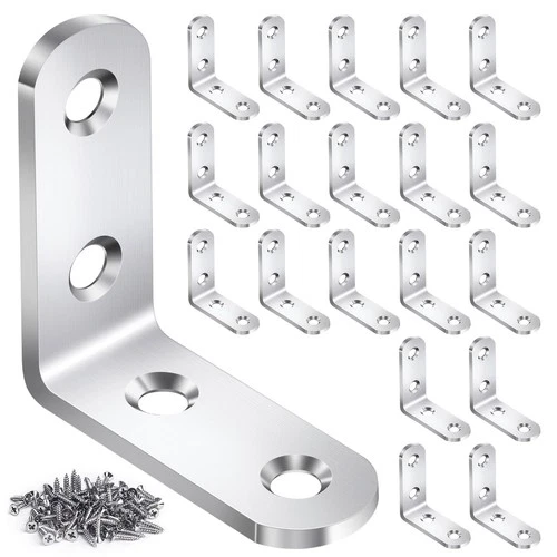 20PCS L Bracket Corner Brace Sets, Stainless Steel L | 40x40MM, Silver
