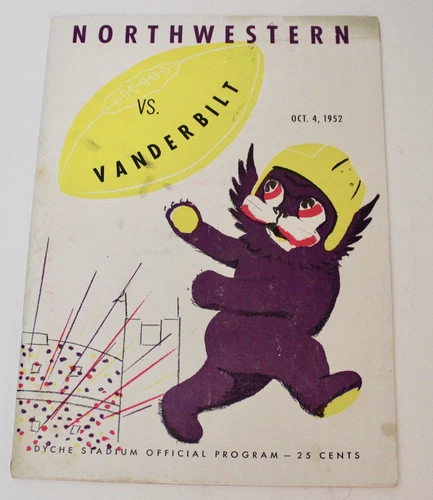 Evanston Illinois 1952 football program Vanderbilt Vs. Northwestern Dyche