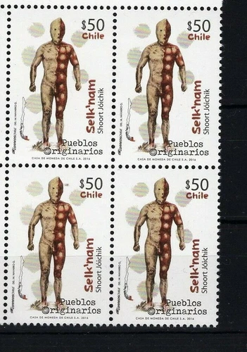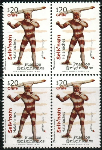 CHILE 2016 Selk'nam 20 pesos Halahaches MNH block of 4
