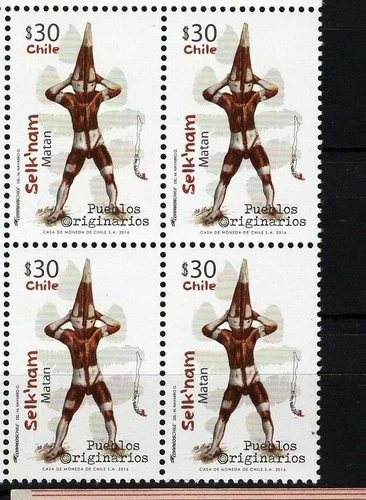 CHILE 2016 Selk'nam 30 pesos Matan MNH block of 4
