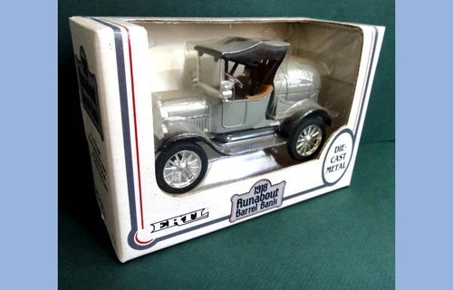 1918 vintage ERTL RUNABOUT BARREL BANK AGWAY UNUSED die cast toy