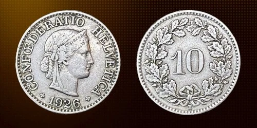 1926-B Switzerland🇨🇭10 Rappen KM#27 Mintage 3,000,000 Coin. Copper-Nickel