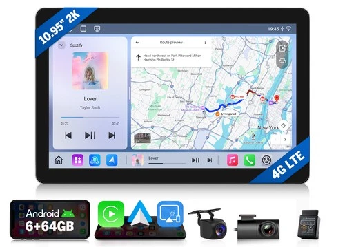 10.95" 2K QLED 6+64 Single DIN Car Stereo Android Auto Wireless CarPlay GPS WiFi
