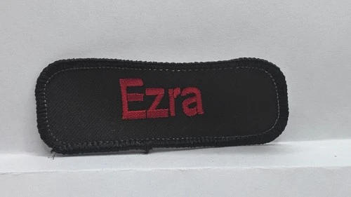 EZRA USED EMBROIDERED SEW ON NAME PATCH TAGS ASSORTED COLORS