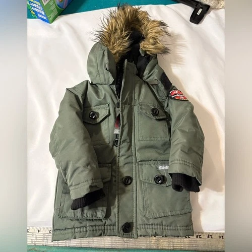 Avalanche Outdoor Supply Boys 24 month Jacket Olive Green Feux Fur button zip
