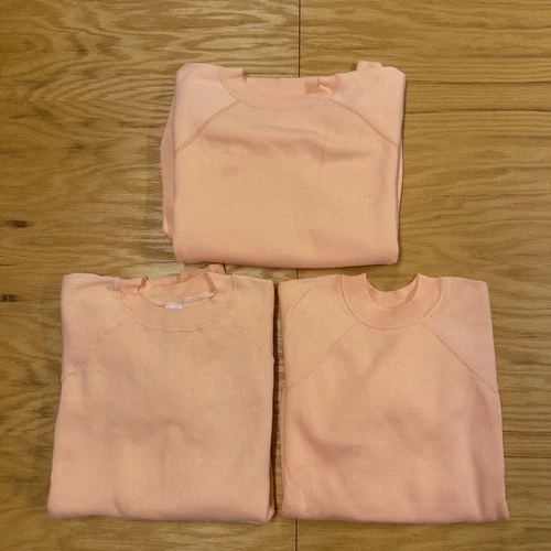 Lot of 3 Vintage 60s 70s Raglan Blank Crewneck Sweatshirt Peach L/XL USA Made