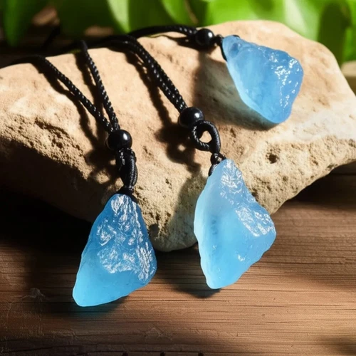 Raw Aquamarine Pendant Necklace - Healing Blue Crystal Amulet for Women & Men