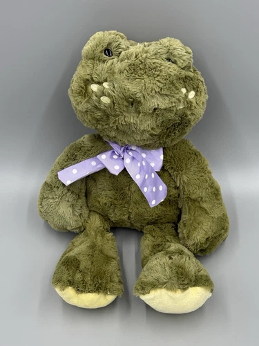 Animal Adventure Green Frog Plush 13” Stuffed Animal W/ Purple Polka Dot Ribbon