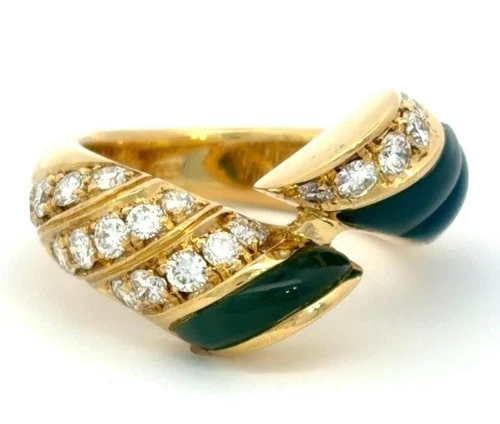 Picchiotti Diamond 0.62ct Green Stone 18k Yellow Gold Wrap Ring US 4.75 EU48.5