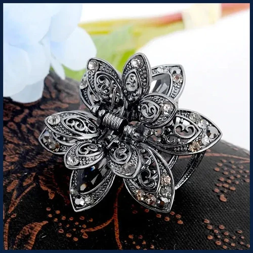 YHJ NEW Baroque Style Hair Claw Six Leaves Flower Hollow Alloy Design Hair Claw