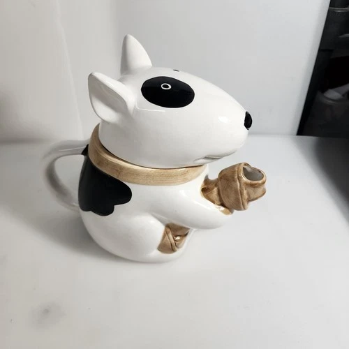 Spot Bull Terrier Dog Ceramic Teapot 8 Inches Tall Little Beggar Pose