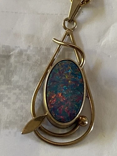 9ct Gold Lightening Ridge Doublet Opal Pendant . 2.89 Grams. Bright Colours