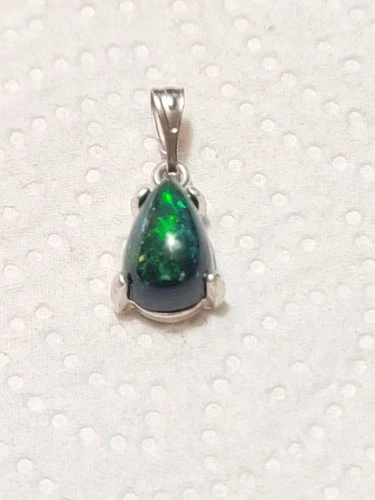 Ethiopian Black Fire Opal Pendant Natural 9x7/925 Sterling Silver