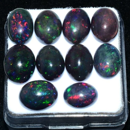 Set Of 10 Pcs Natural Ethiopian Black Opal Oval Cabochon Flashy Loose Gemstones