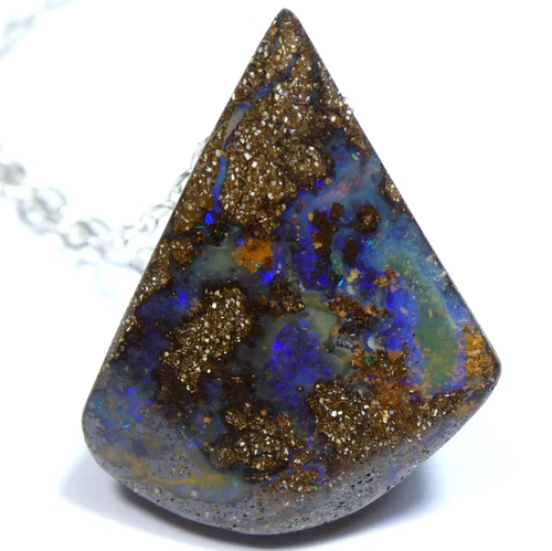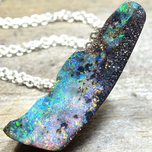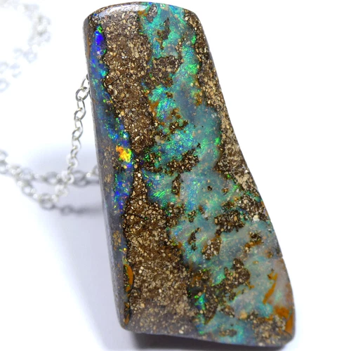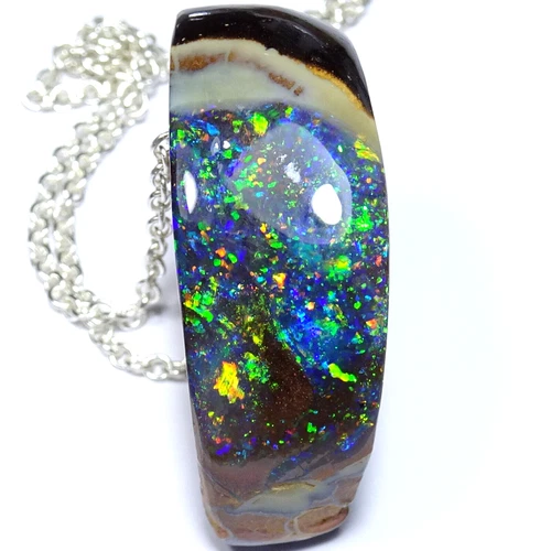 11.48 CT AUSTRALIAN BOULDER OPAL Pendant Necklace Silver 925 VIDEO Jewellery
