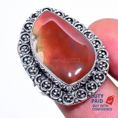 925 Silver Genuine Boulder Opal Channel Set Wedding Statement Trendy Ring Size 8
