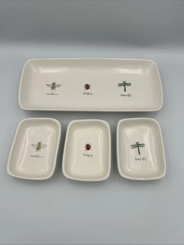 NWOT Rae Dunn Serving Set Ceramic Insect Trays Bumblebee Ladybug Dragonfly HTF