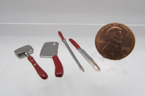 Dollhouse Miniature Metal Butcher Block Tool Knife Set 4 Pieces IM65571