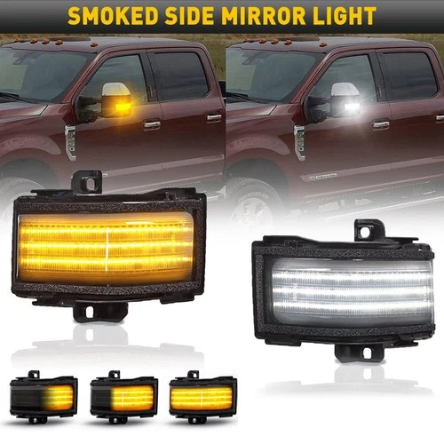 SMOKED Switchback LED Strips Towing Mirror Light For 17-22 Ford Superduty EOU