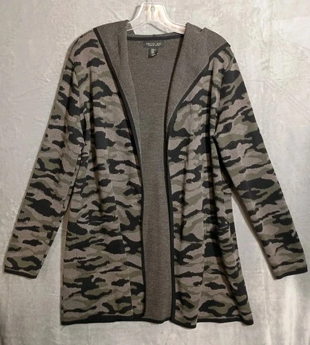 Rachel Zoe Camo Open Front Hooded Cardigan Sweater Women's Size XL