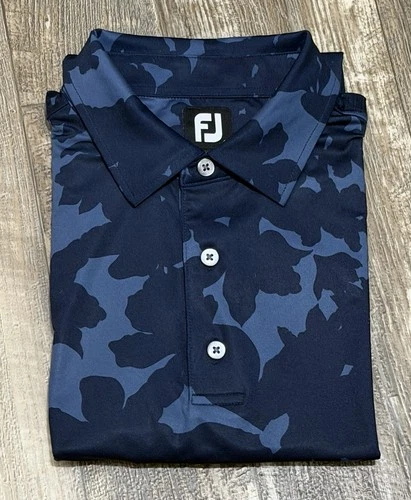 Footjoy Mens Polo Shirt Size L Blue Camo Forest Dunes Golf Club Polyester Blend