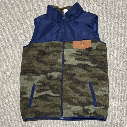 Carter’s Kids Boys Size 10/10A Full Zip Vest Brown Blue camouflage Sherpa fuzzy