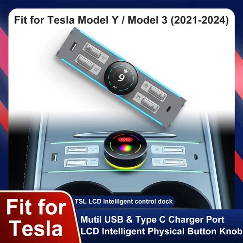 Smart LCD Knob Expansion Dock For Tesla Model 3 / Y 2021-2024 Center Control Hub