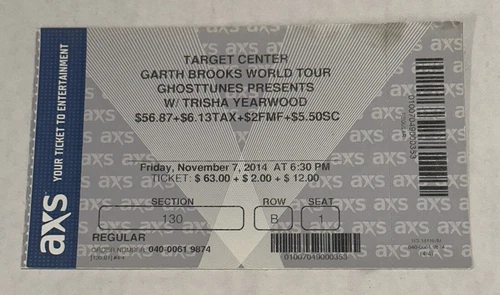 Garth Brooks Trisha Yearwood Concert Music Ticket Stub Target Center 11/7/2014