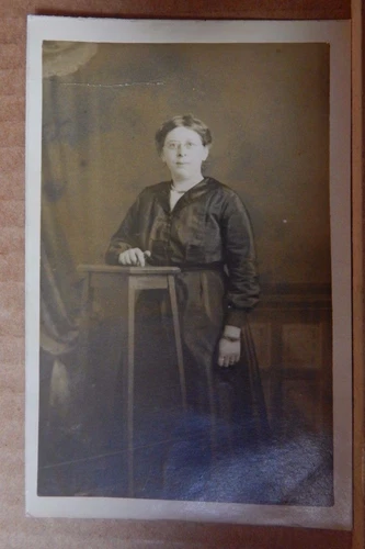 Postcard middle aged lady "Carrie" Long Dress studio photo Gales studios