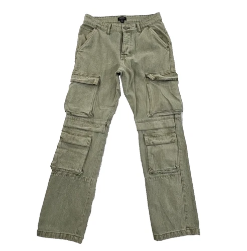 Boohoo Man Cargo Jeans Men's 32x32 Green Relaxed Fit Nine Pocket Button Fly EUC