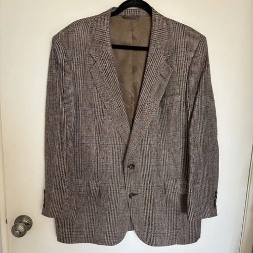 Vintage Christian Dior Brown 100% Silk Houndstooth Mens Blazer Size 44