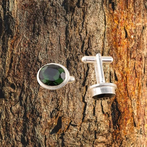 Natural Green Tourmaline Birthday New Year Cuffs Jewellery 925 Silver