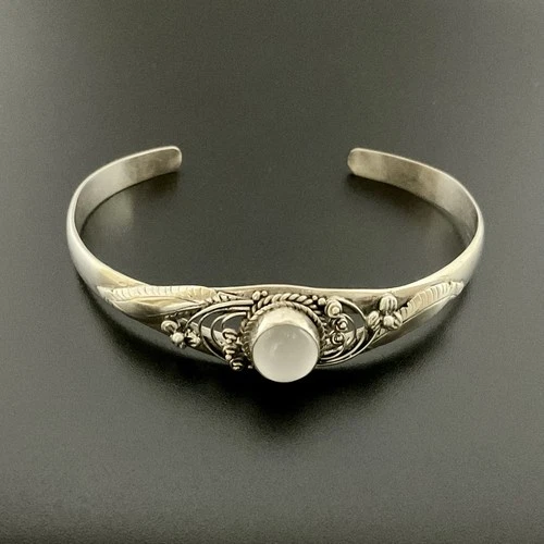 Vintage Sterling Silver and Moonstone Southwestern Ornate Cuff Bracelet