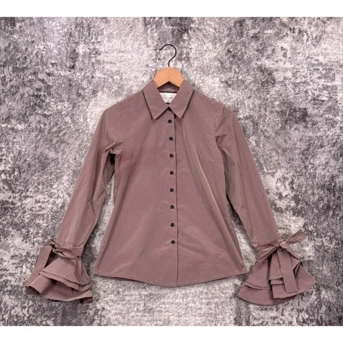 Alexis Top XS Womens Pink Stripe Flare Cuff Button Shirt Blouse
