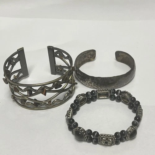 Random Lot Of 3 Costume Jewelry Bracelets Vintage To Modern Fashion Metal Stones