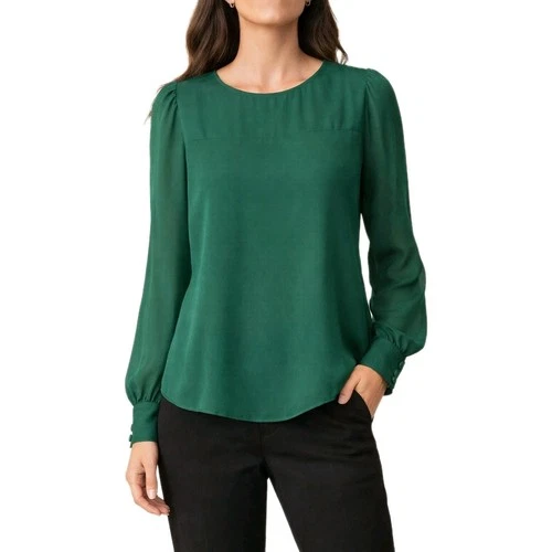 J.Crew Green Blouse Women Size Small Sheer Long Sleeve Button Cuff...